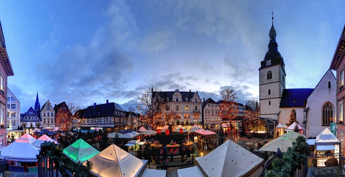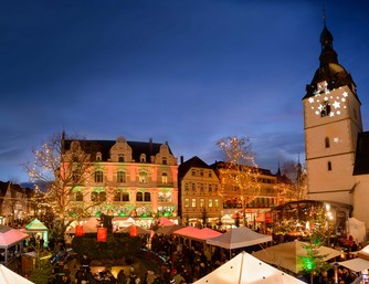 Detmold Marktplatz. Veranstaltung in der Nacht.
